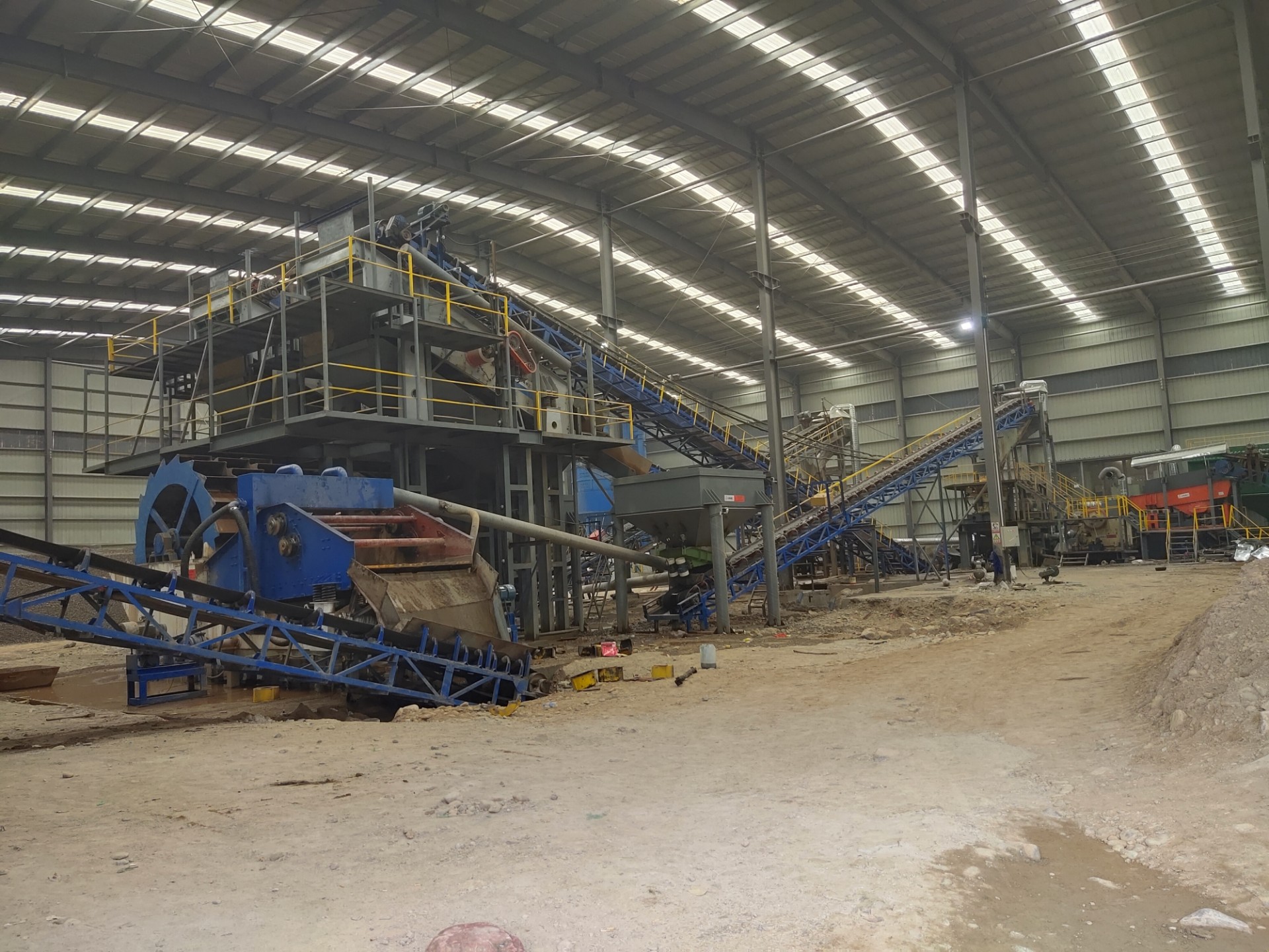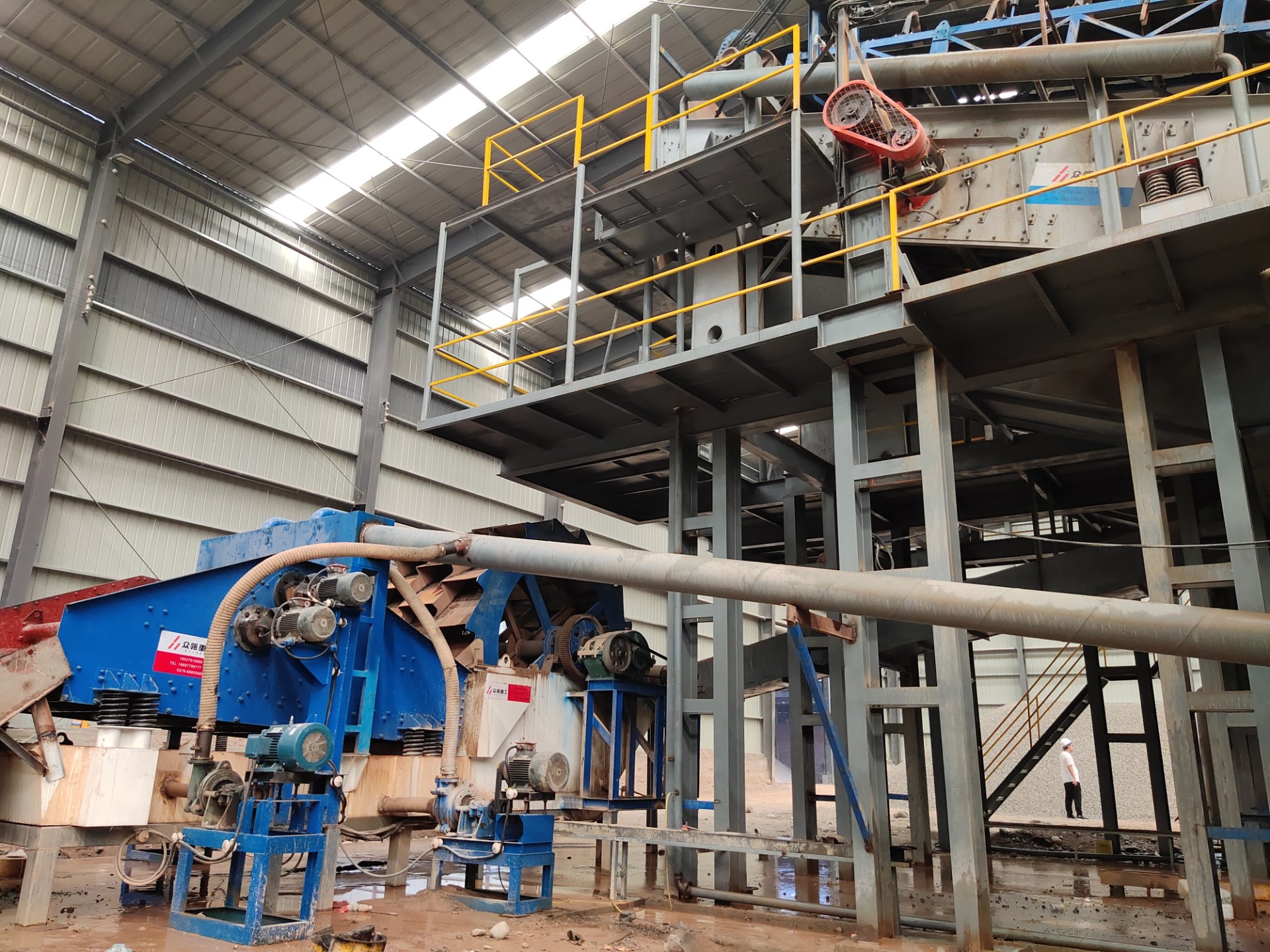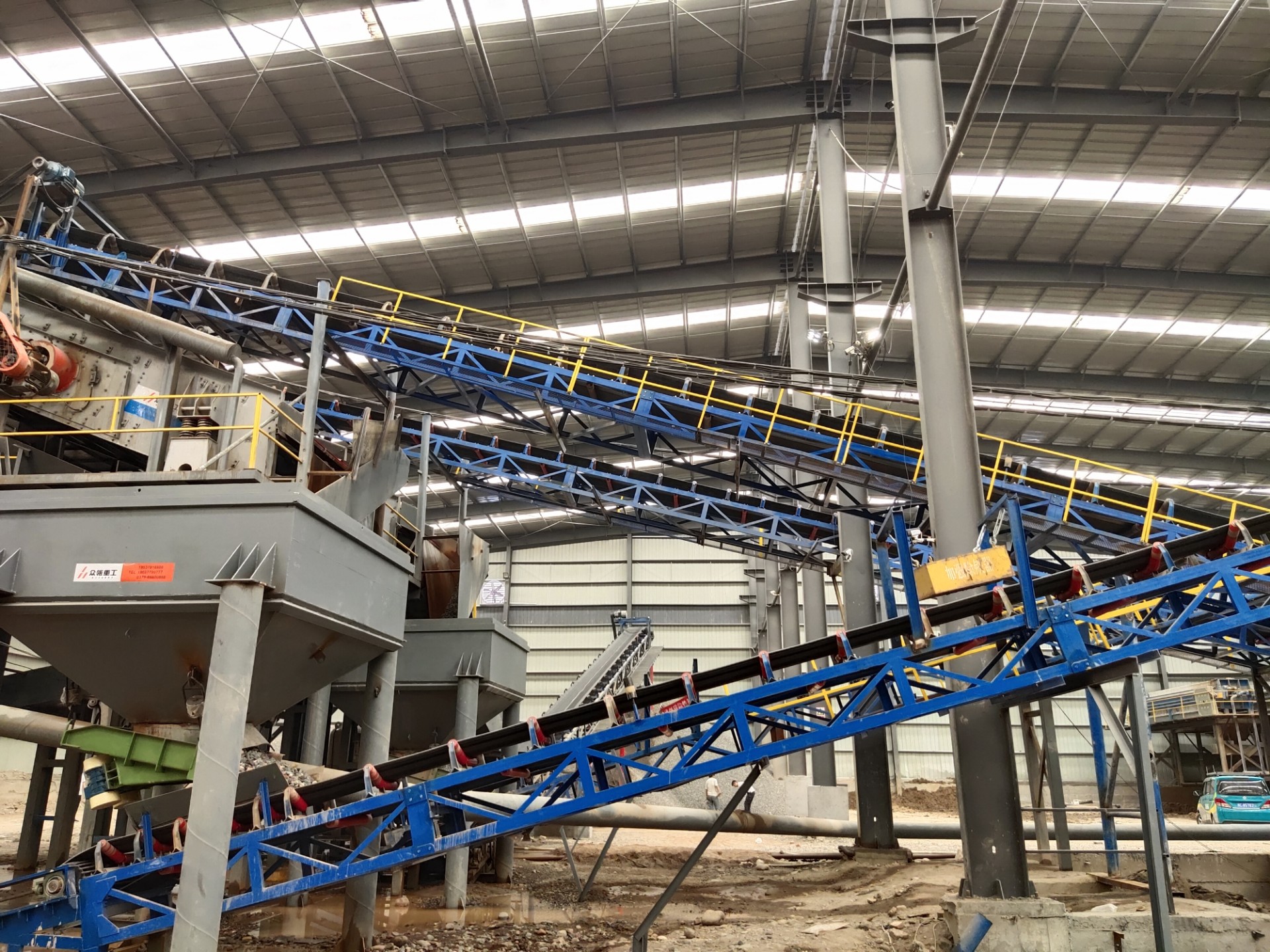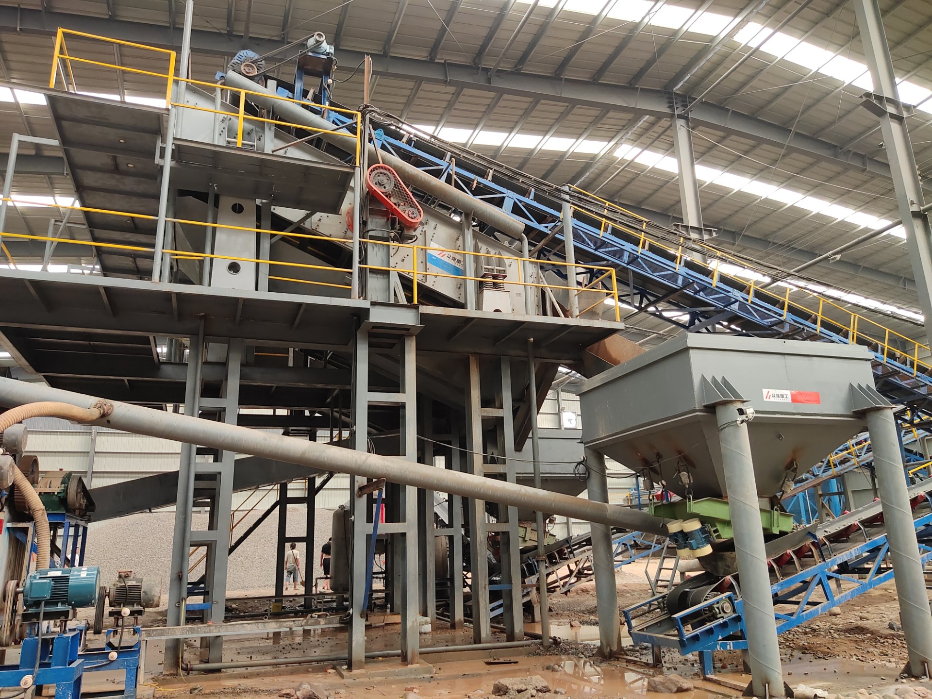 設(shè)備配置:喂料機(jī)、顎式破碎機(jī)、圓錐破碎機(jī)、振動篩、制砂機(jī)、洗砂機(jī)、污水罐